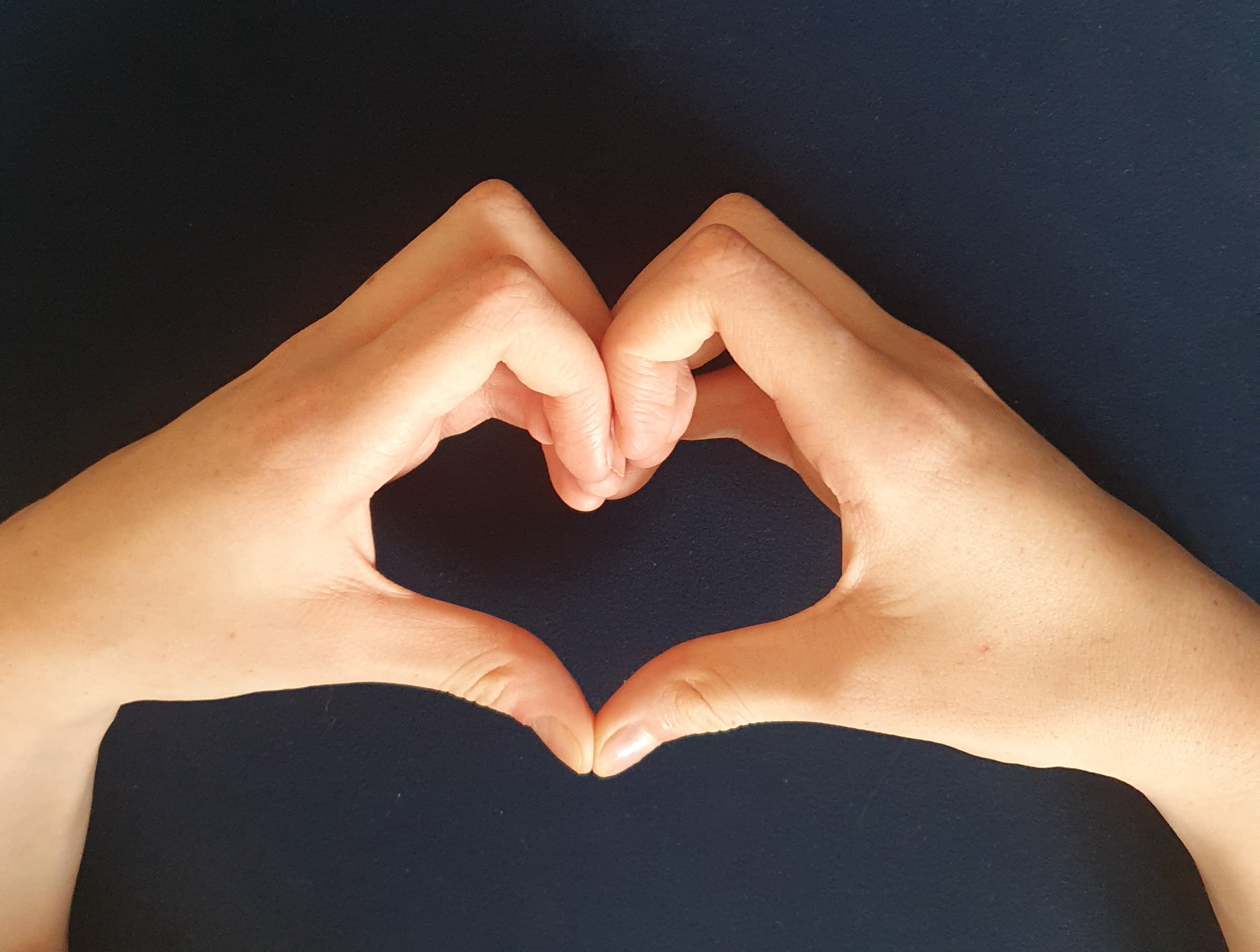 The image for this site was the first thing I did and I knew exactly what I wanted to capture. It is of my youngest daughter’s hands forming a perfectly imperfect whole heart, deliberately off-centre, against a dark blue background. Hands are symbolic of care. Young hands are symbolic of a new approach. Hearts are symbolic of love. Whole hearts are symbolic of being determined and devoted, but also of owning it all; our whole narrative, every emotion, the ups and downs, the laughs and tears. Wholehearted care is human so it will often be and feel imperfect and off-centre. It’s not about forming a perfect heart, it’s about keeping and embracing a wonky, whole heart. Blue is the colour of the vastness of the sky and the sea. I grew up on an island surrounded by both. I love the idea of my wholehearted care being part of something bigger, even and especially when I feel small and alone in it. According to Wikipedia, blue is the colour of ‘serenity, stability, inspiration and wisdom’. Past caring often felt the opposite to me; it felt stressful, unstable, boring and borne out of necessity not wisdom. It’s a conscious decision to aim for the blue. I chose a dark blue cos our sofa is that colour ;-) but then I reckoned it was apt cos sometimes we care against a dark backdrop, and it’s an active choice to notice the light on the wholehearted hands.